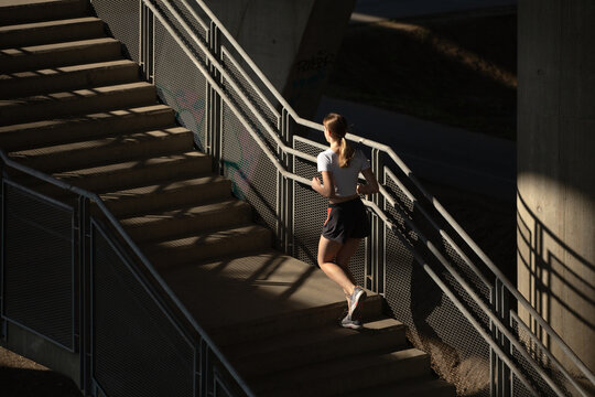 Energetic duo exercising on beach stairs promoting active lifestyle
