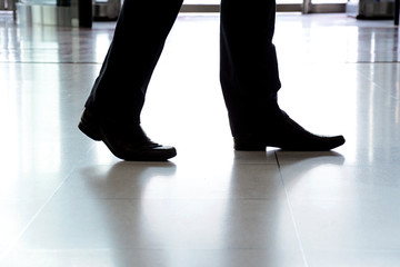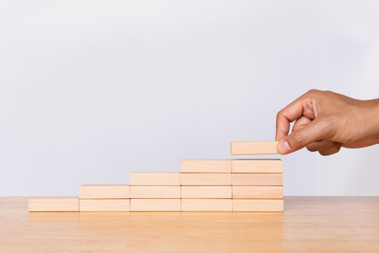 Man Walking Up Stone Stairs.  Steps To Success. Upward Mobility. Business Growth. Concrete Steps.