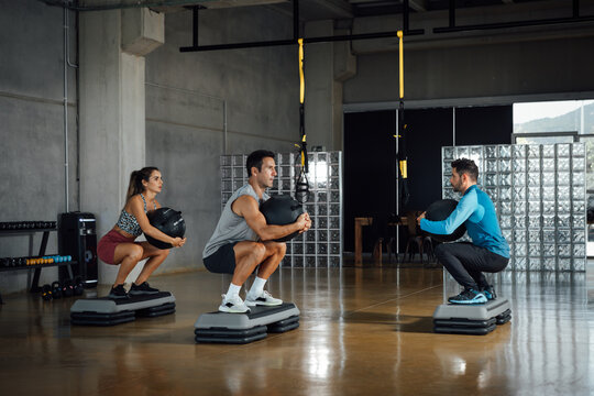 The girl in sneakers is engaged on the step-platform for fitness. Feet on the step for sports. Close up