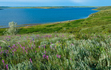 Dry feather grass Ukrainian steppe on the slopes of the Tiligul estuary, Ukraine