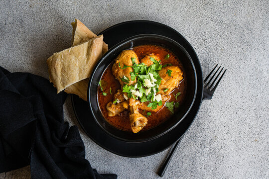 Georgian dish Chakhokhbili is stewed chicken meat in tomato sauce with spices and herbs.