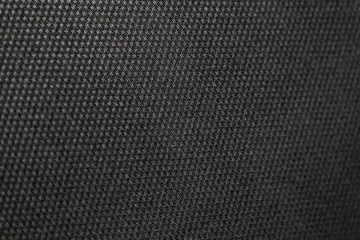 Close-up black car seat trim. Soft rough carbon fabric texture.