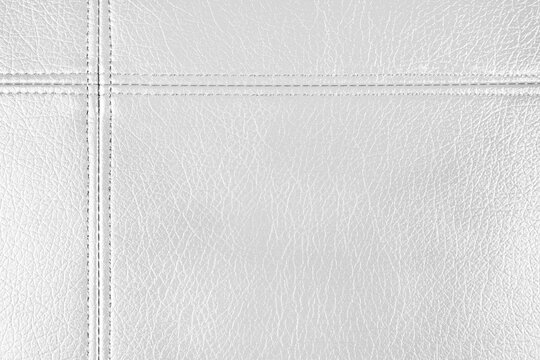 Natural, artificial white leather texture background with decorative seam. Material for sport items, clothes, furnitre and interior design. ecological friendly leatherette.