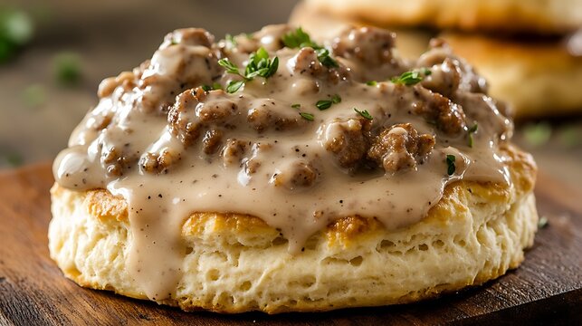 Sausage Gravy Biscuit A fluffy biscuit smothered in rich, peppered sausage gravy