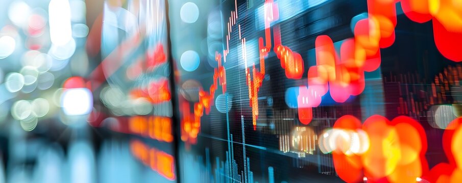Stock market data on digital LED display. Fundamental and technical analysis with candle stick graph chart of stock market trading to represent about Bullish and Bearish point.