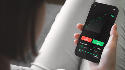 Person analyzing stock market charts on smartphone