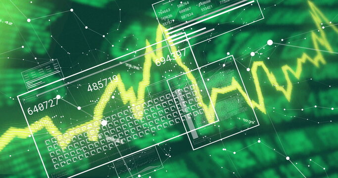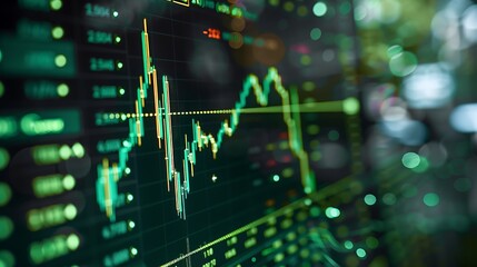 Stock market data analysis digital chart green background