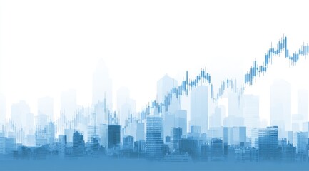 Neon bars and lines highlighting financial trends displayed against a luminous cityscape under a calm and vibrant sky