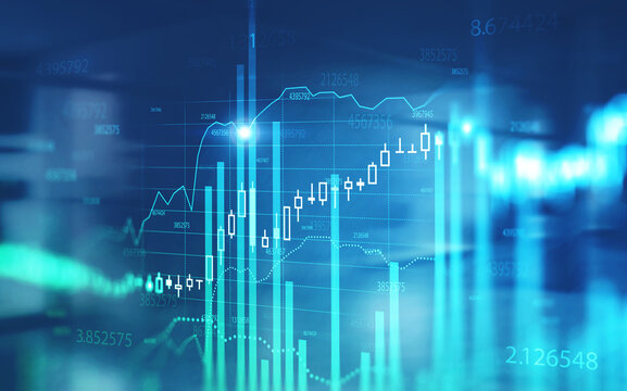 Stock trading screen with glowing financial charts, futuristic digital business analysis interface