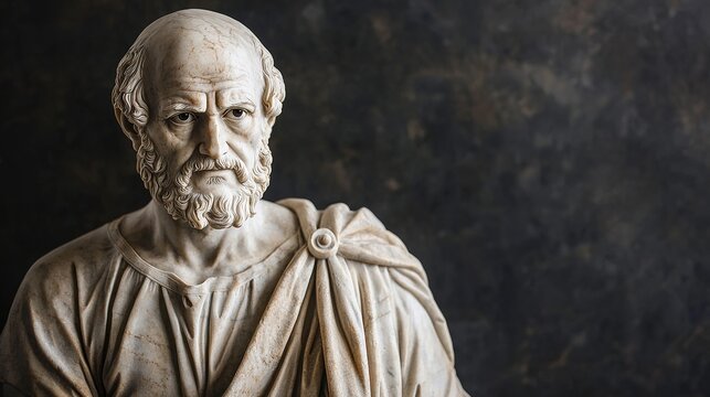 Classical marble bust of Stoic philosopher with wise expression and detailed sculptural features