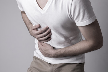 Close up of male body having stomachache