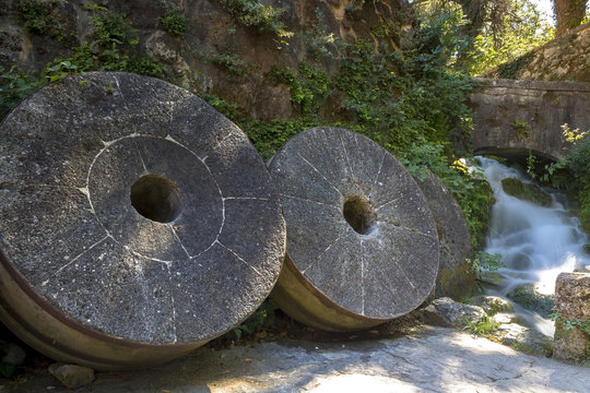 old stone wheels, with which flour is milled