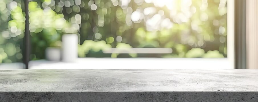 Rustic elegance in nature. Empty stone table in beautiful garden providing stunning background for design and display perfect for summer relaxation