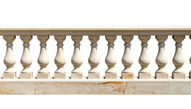Carved stone balustrade with symmetrical columns, isolated on a black background
