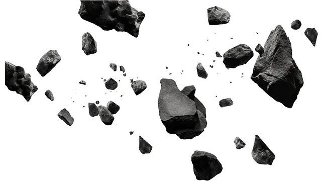 Abstract Falling Rock Stone Debris on White Background