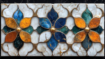Intricate floral marble inlay with vibrant colored stone petals and scrollwork