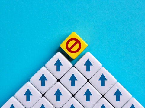 Hand focus in close up Businessman hand stop falling down of wood block .planing and strategy business disruption concept.