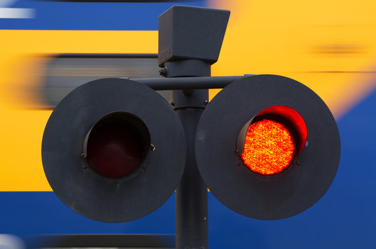 Red illuminated pedestrian crossing stop signal at night in the city.