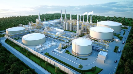 Isometric 3D Render: Industrial Storage Tanks and Green Landscaping AI Generated