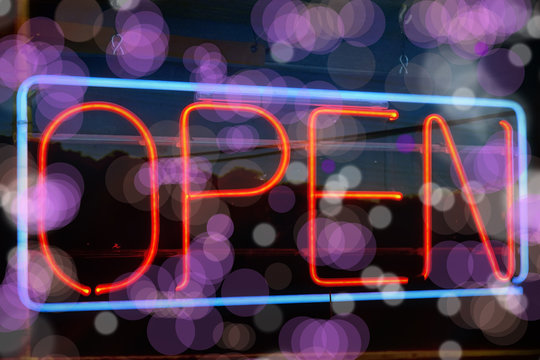 A dimly lit street scene at night features a storefront with a glowing neon sign in purple and pink hues. The sign above the door reads "Save 625." The pavement in front of the store is wet, likely fr