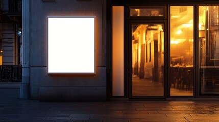 Blank white restaurant sign mockup, large billboard banner on a storefront door mock up template.