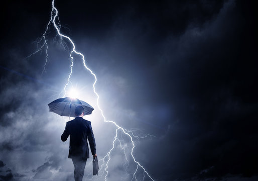 Yacht with a sail in the ocean during a storm , concept of Dramatic weather