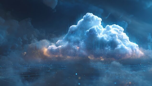 Digital cloud, data network, stormy night sky,  conceptual graphic design
