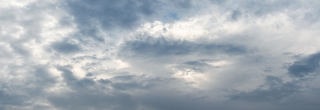 Dramatic sky with dark storm clouds, panorama