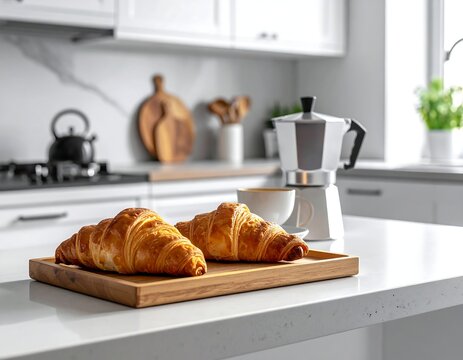 Interior de cocina en una hermosa casa nueva de lujo con isla de cocina y suelo de madera, estilo moderno minimalista y luminoso, con espacio para texto.