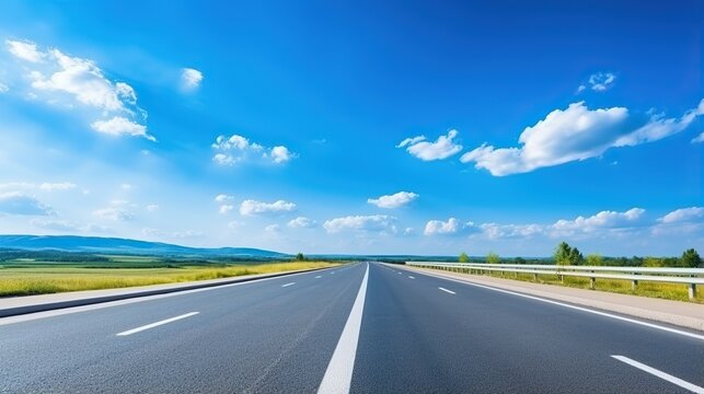 Asphalt road with yellow lines disappearing to a distant blurry horizon