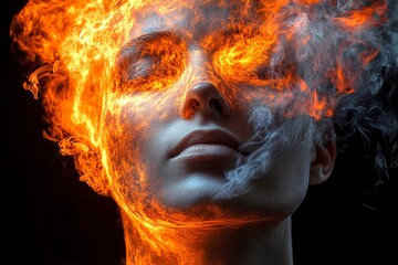 Metaphorical burnout syndrome feelings of a loss of pleasure or interest. Burnout syndrome - cause of depression: abstract image of individual status. Dealing with depression. Inner darkness.