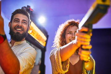 Middle-aged asian couple in disagreement expressing contrasting emotions