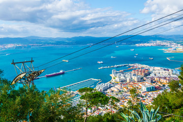 Aerial view of gibraltar with a cable car