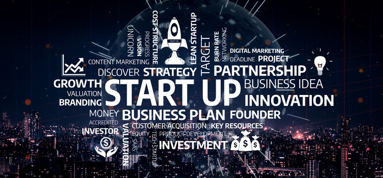 This image visually represents key concepts in startup culture, emphasizing innovation, investment, and strategic growth against an urban skyline backdrop, suitable for business contexts. Tessel