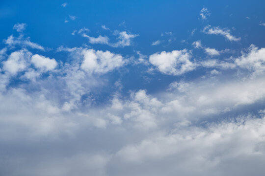 Blue sky background with tiny stratus cirrus striped clouds. Clearing day and Good windy weather