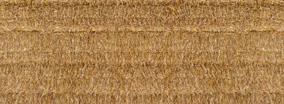 Gepresstes Stroh in Panorama Nahaufnahme, viereckige Ballen sehr dicht gestapelt