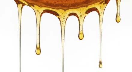 Golden honey pouring with dynamic splash, illustrating fresh organic produce and natural ingredients. Detail of sticky liquid with air bubbles, perfect for culinary backgrounds or