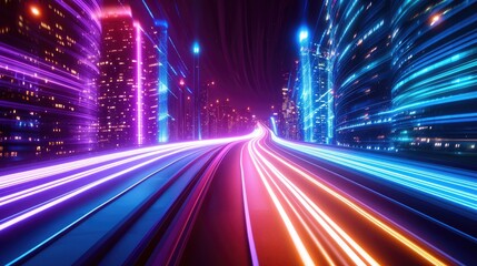 Futuristic bitcoin symbol with neon pulses and blockchain streams