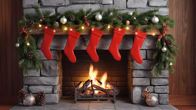 fireplace with christmas decorations