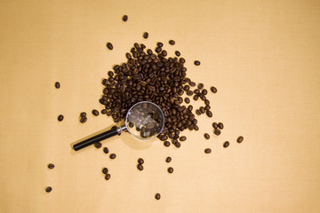 Park bench strewn with autumn yellow maple leaves. Wooden bench on a background of autumn leaves
