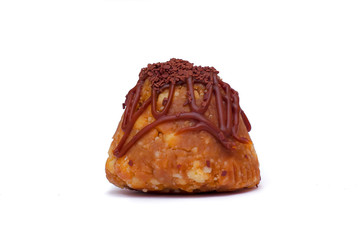Muffin with chocolate strew isolated on white. Sweet dessert.