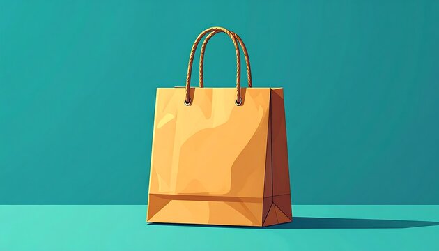 Minimalist brown paper gift bag on vibrant red background