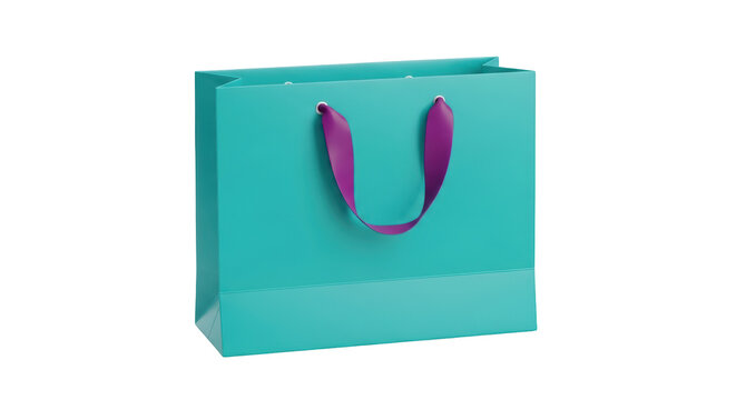 Isolated turquoise gift bag with purple handles for shoppers for presents, gifts, or merchandise