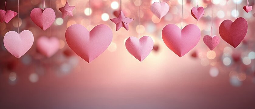 Vibrant star and heart paper garland with foil confetti and warm string lights backdrop