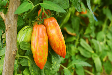 Fresh ripe organic striped zebra tomatoes whole isolated on white background.