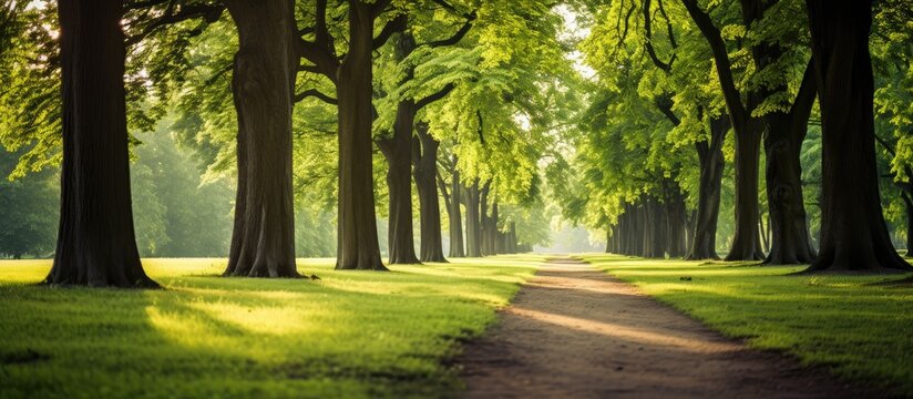 An inviting path through the park beckons for a leisurely stroll with an appealing copy space image