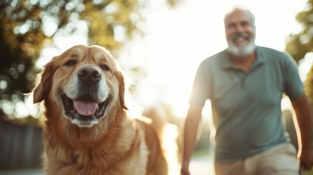 Woman strolling with dog on sunny pathway