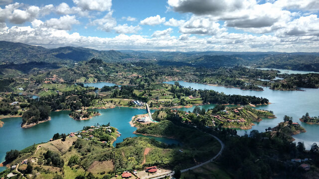 The Guatape Dam in Colombia has strong and beautiful colors