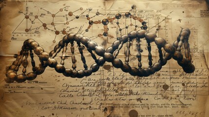 Vintage DNA Diagram with Molecular Structure - Generative AI