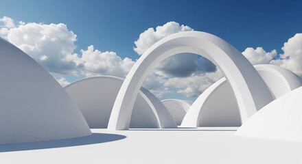 3d render of abstract modern architecture with empty concrete floor, minimal white exterior, car presentation background. High quality